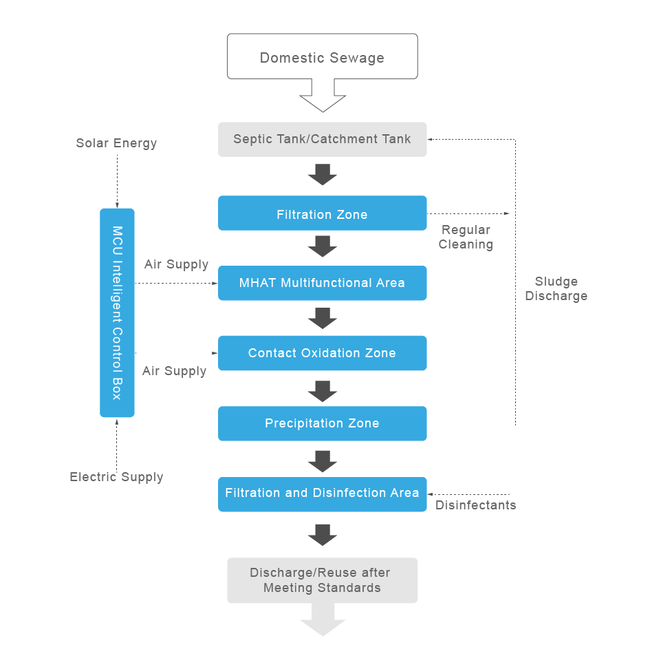 Sì, l'impianto di trattamento delle acque reflue domestiche (STP) Mejec Scavenger è progettato per trattare sia le acque nere che quelle contenenti ceneri prodotte dalle abitazioni. Tra queste rientrano l'acqua del water, le acque reflue di cucina, le acque di lavaggio e le acque di balneazione. Utilizzando l'innovativo processo di ossidazione a contatto MHAT , il sistema decompone efficacemente la materia organica e gli inquinanti provenienti da tutte queste fonti, garantendo che l'effluente finale soddisfi gli standard locali di scarico per un rilascio o un riutilizzo sicuro.
